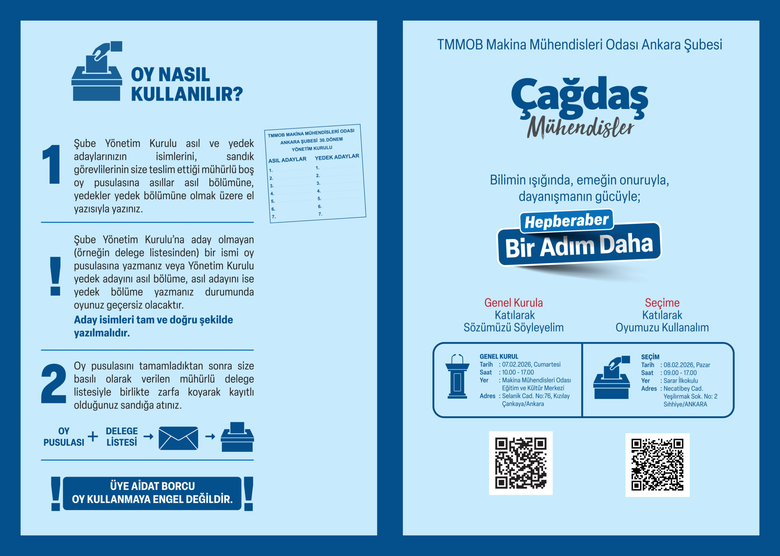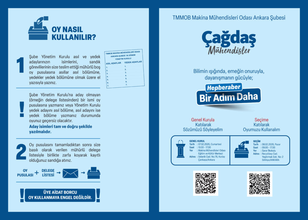 TMMOB Makina Mühendisleri Odası Ankara Şubesi’nin 30. Olağan Genel Kurulu 7-8 Şubat 2026 tarihlerinde yapıldı. 7 Şubat Cumartesi günü MMO Eğitim ve Kültür Merkezi’nde yapılan genel kurulda MMO Ankara Şubesi’nin 29. Dönem çalışmaları değerlendirildi. 8 Şubat 2026 Pazar günü Sarar İlkokulu’nda yapılan Genel Kurul seçimlerini Serap Özpolat Çete başkanlığındaki Çağdaş Mühendisler listesi 702 oya karşılık […]